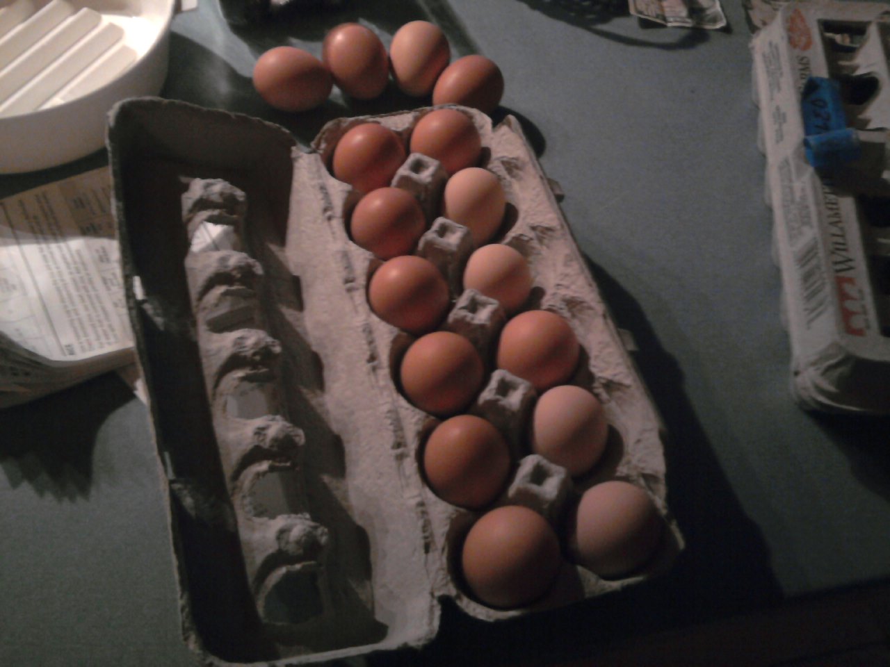 We were holding steady at two eggs a day for a long time there.... last weekend we were kinda joking around that if the girls didn't start laying more that chicken and dumplings might be on the dinner menu soon... Well lo and behold we started getting 3 eggs a day, then 4... they must have overheard us...